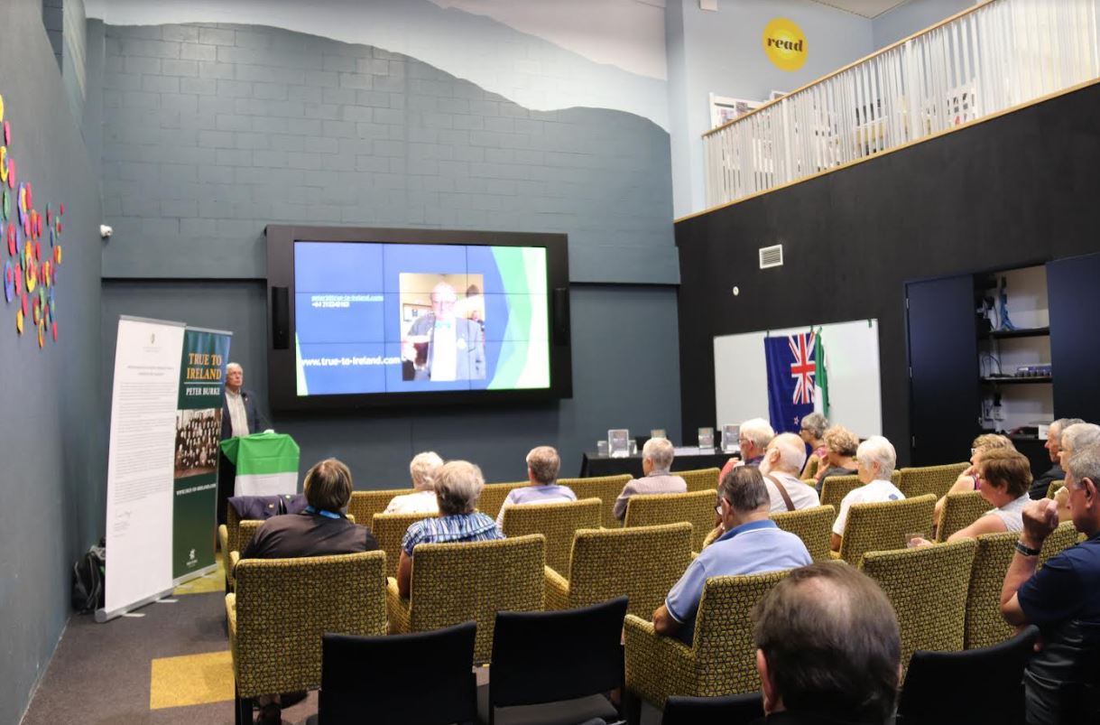 Ireland's Ambassador to New Zealand, Peter Ryan, Peter Burke, and Damien O'Connor the Minister of Agriculture Peter Burke signing the book at the Thistle Inn – Wellington's oldest pubPeople with Irish links and friends at the launchA walking tour with Peter to places in Wellington which were of special significance to the Sons of Eire Special guest Fr Eamon Aylward from Ireland and Peter Burke. Fr Eamon at the grave of his uncle Maurice at Opunake Fr Eamon talks to Josie Hogan on the farm where Maurice livedFr Eamon speaking at the Levin Library eventMass at St Mary's Catholic church OtakiLynette Wharfe brings up the two official books at the offertory procession. The books are resting on the Irish flagA large group watch on as Fr Eamon blesses the headstone and grave of Paddy Sullivan at the Otaki cemeteryPeter celebrates St Patricks dayGuests at the Auckland launch of True to IrelandGuests at the Auckland launch of True to IrelandGuests at the Auckland launch of True to IrelandGuests at the Auckland launch of True to IrelandThe book at Unity Books, WellingtonThe book at Muir's, GisborneThe book at Bruce McKenzie Books, Palmerston NorthThe book at Paper Plus, Levin